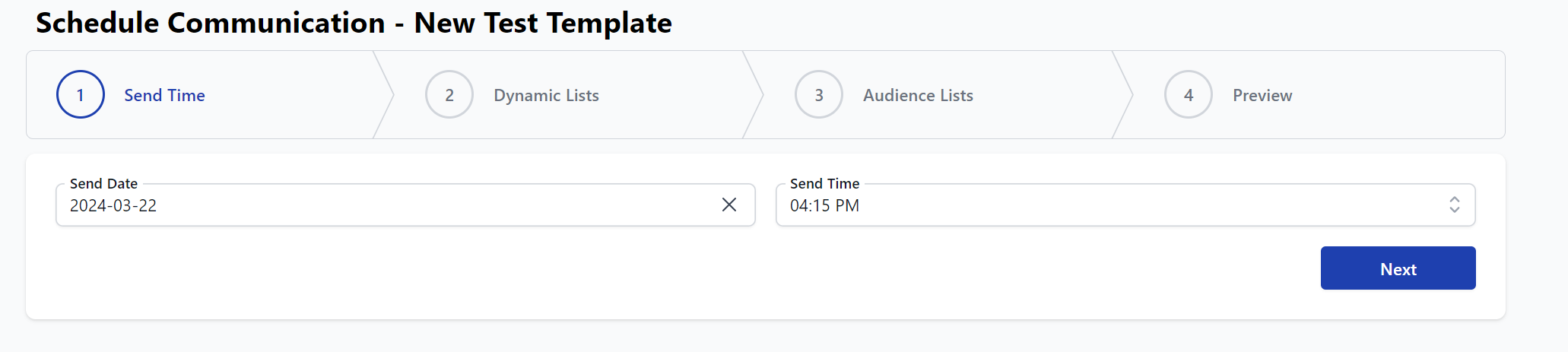 - You will now be taken to the schedule communication page which will allow you to the date and time you wish to send the marketing campaign.