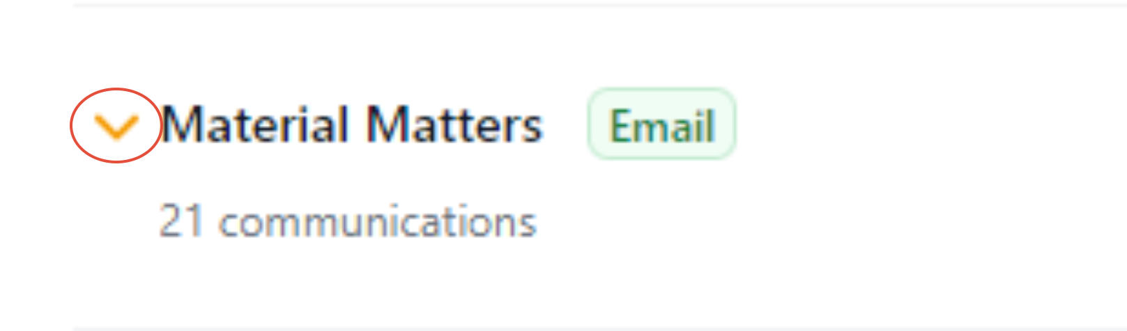 - Find the Campaign your marketing communication belongs to, and then click the orange arrow to expand and display the campaigns contents.