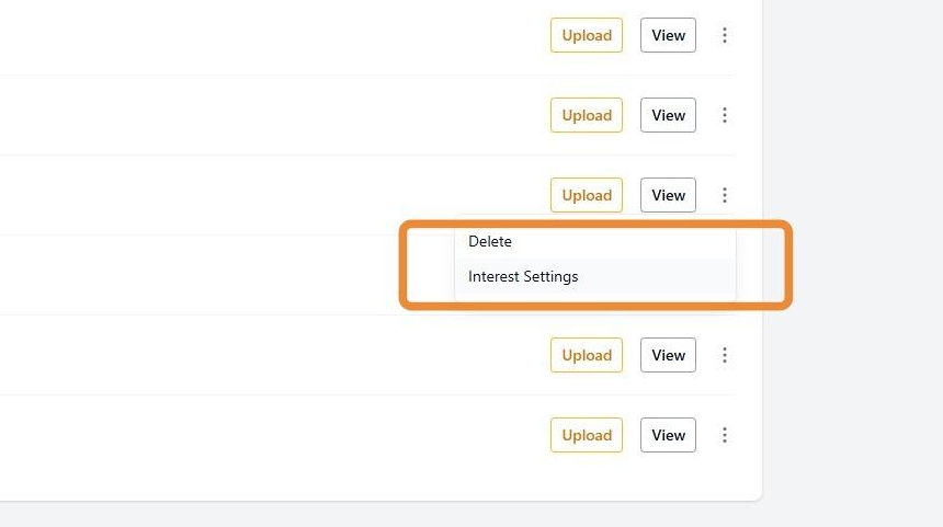 3. Once you select the ellipses on the right hand side. You will see the option for Delete and Interest Settings. Click on Interest Settings.