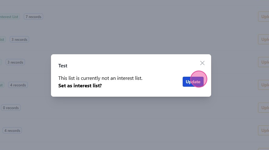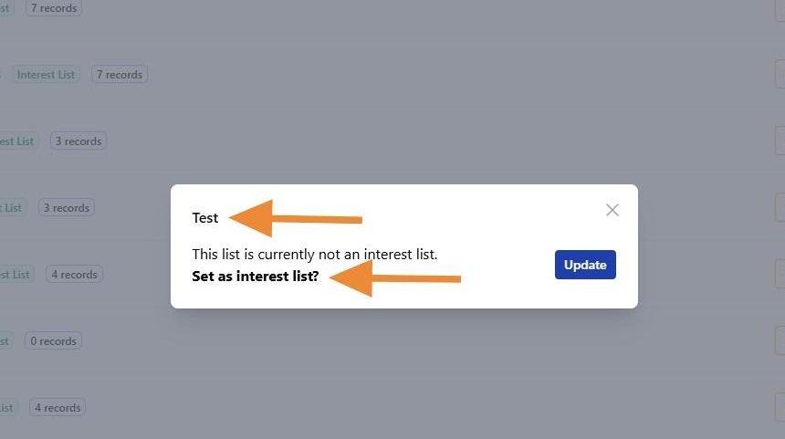 4. In the Interest Settings window, you will see the list name and an option to mark it as an Interest List.