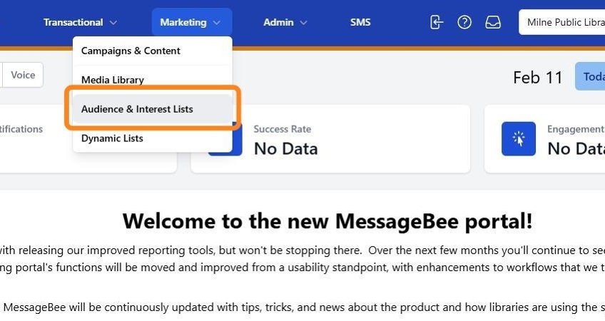 1. To create an interest list, navigate to the marketing tab and select the "Audience Lists".