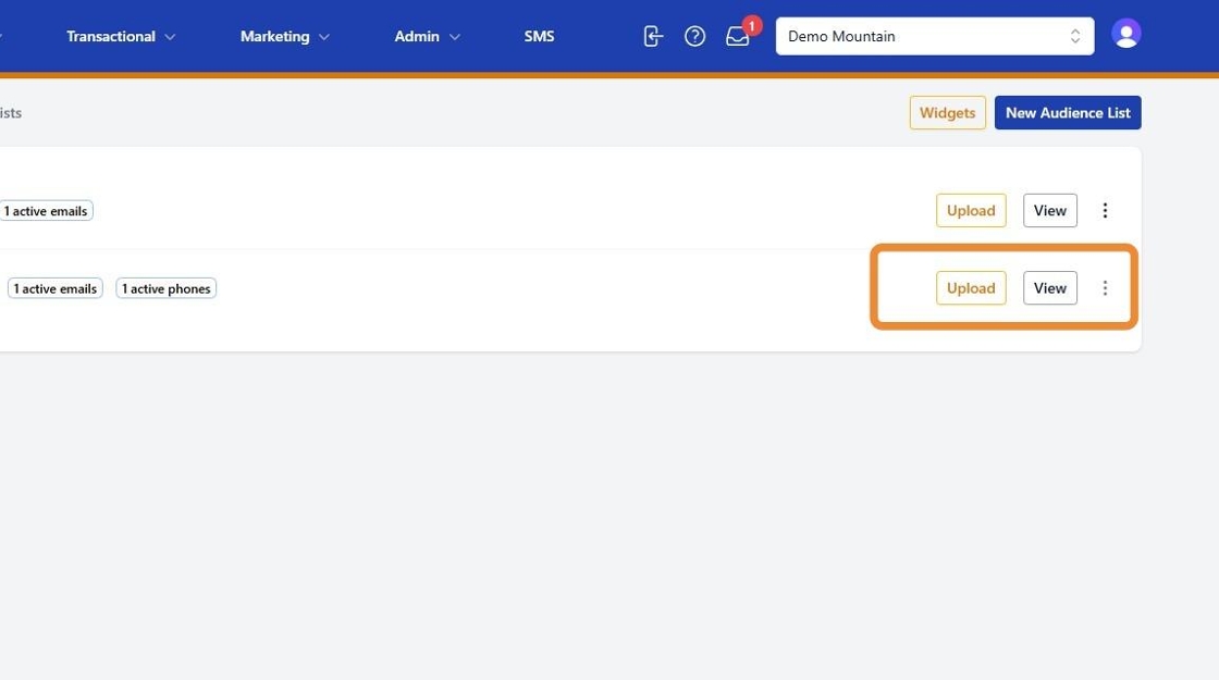 7. For bulk contact uploads, click “Upload Audience List”.