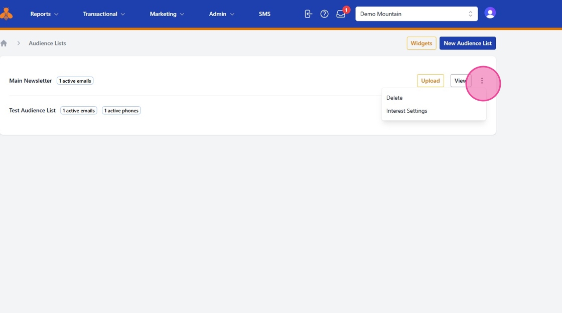 10. You can further customize your audience list by enabling Interest Settings or deleting the list, if it us no longer needed.