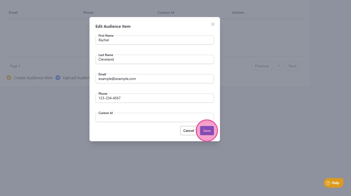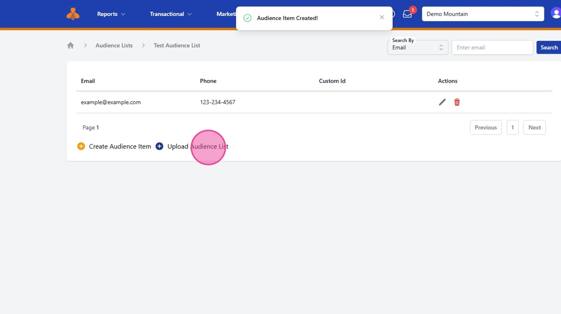 To add contact manually, click “Create Audience Item”.