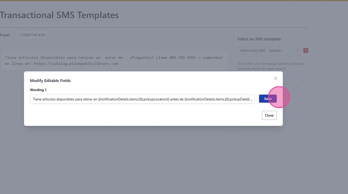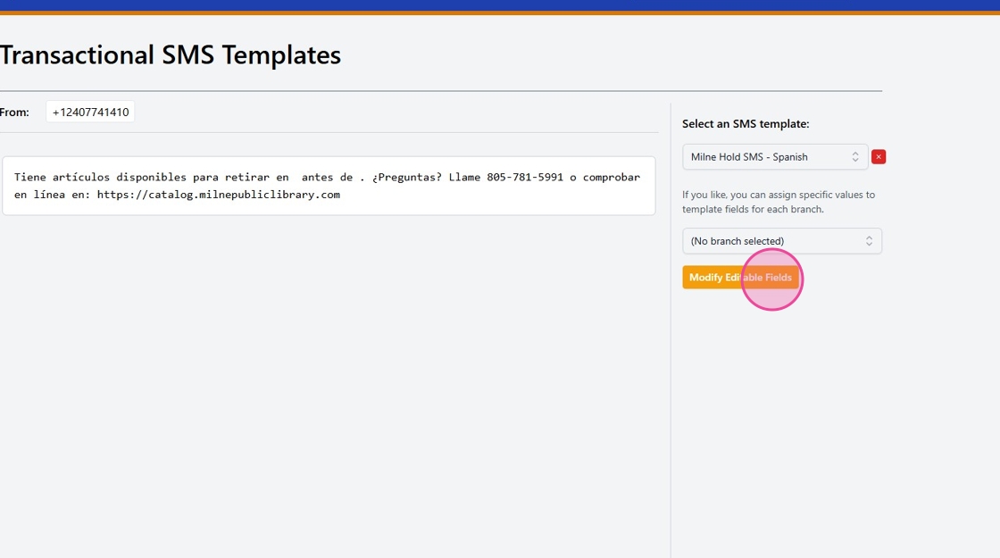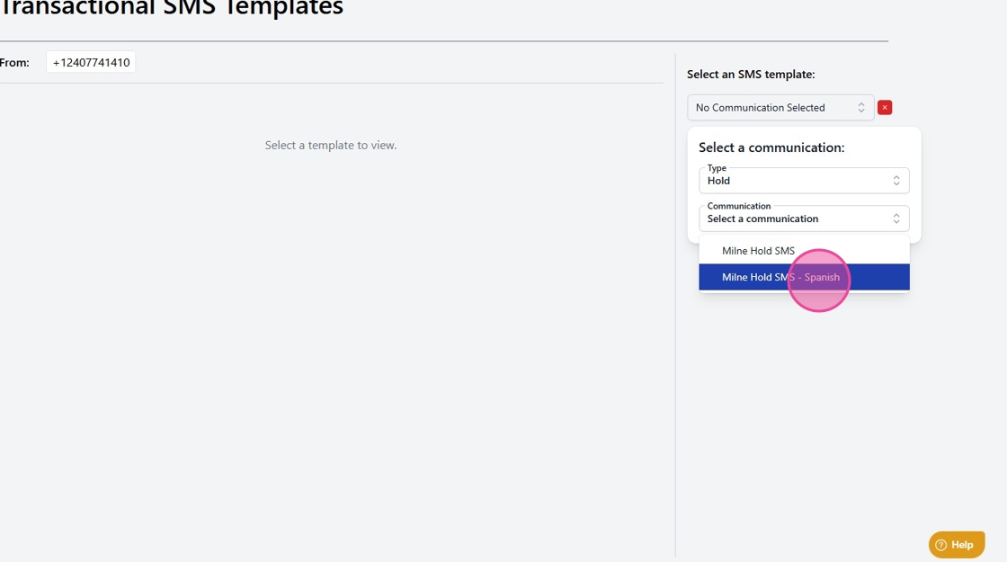 In the example below, we have selected the hold and then the Milne Hold SMS - Spanish.