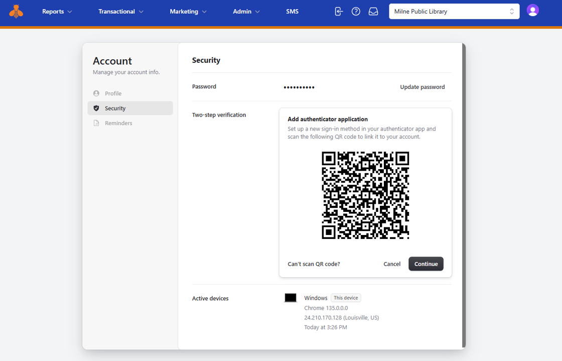 To enhance the security of your MessageBee account, you can enable two-factor authentication (2FA) by following these steps: