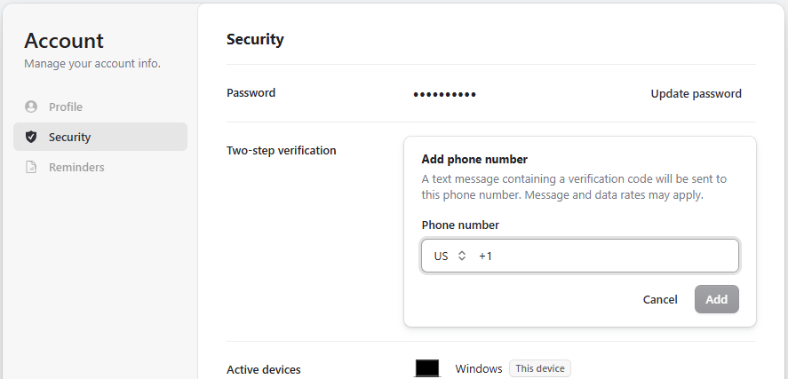 - Once the verification is successful, your two-step SMS verification will be enabled.