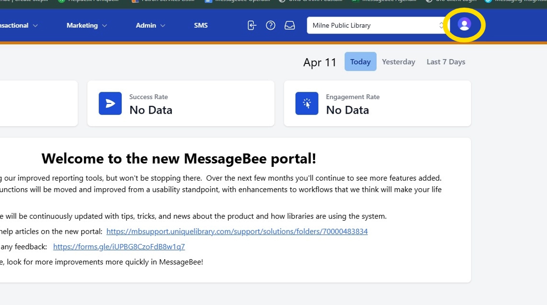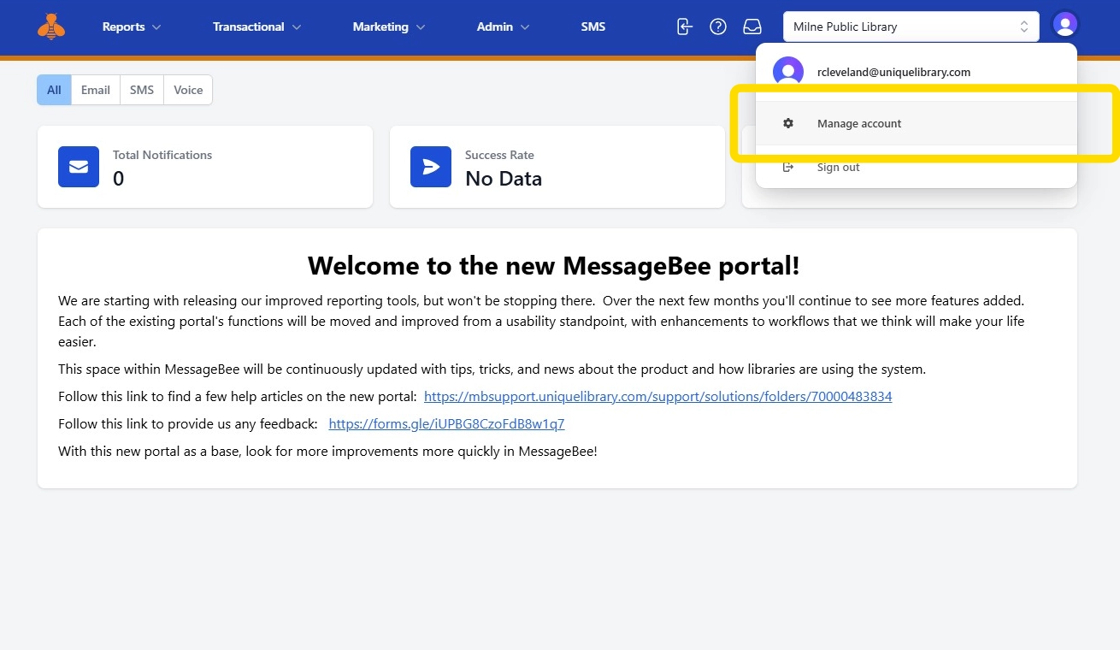 1. Access Your Account Settings: From the home page of MessageBee, click on the account icon in the top right corner.