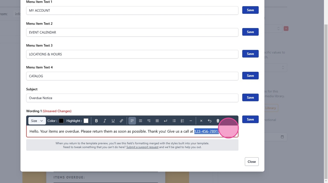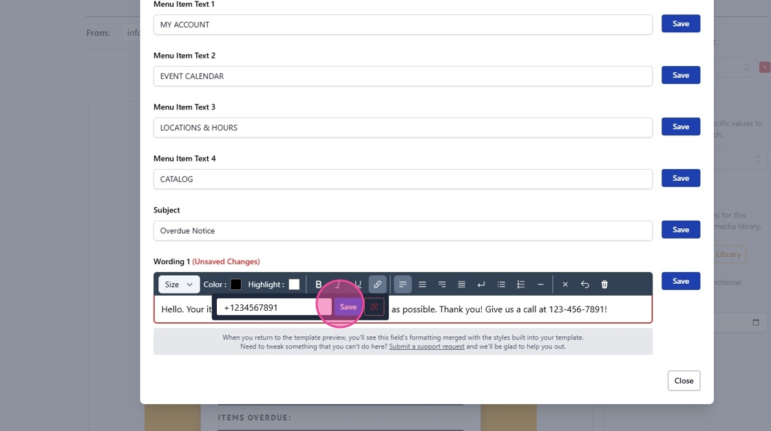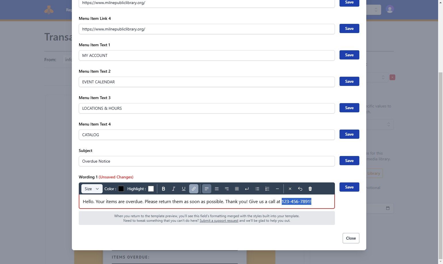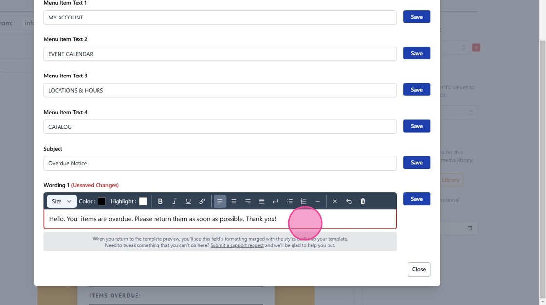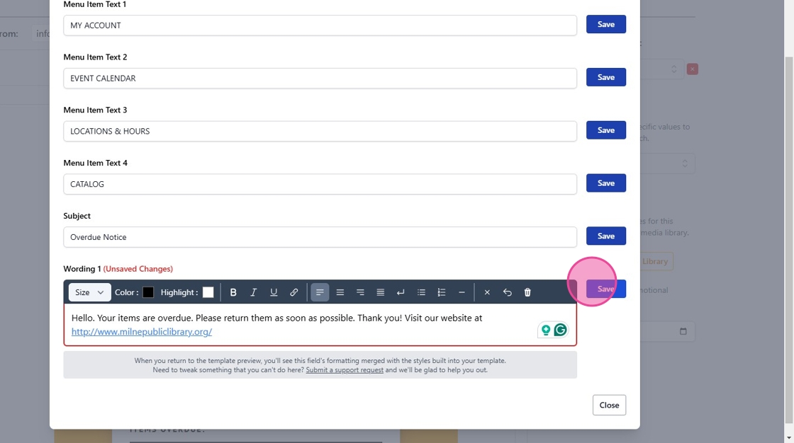 9. Click Save to preserve all modifications to your template.