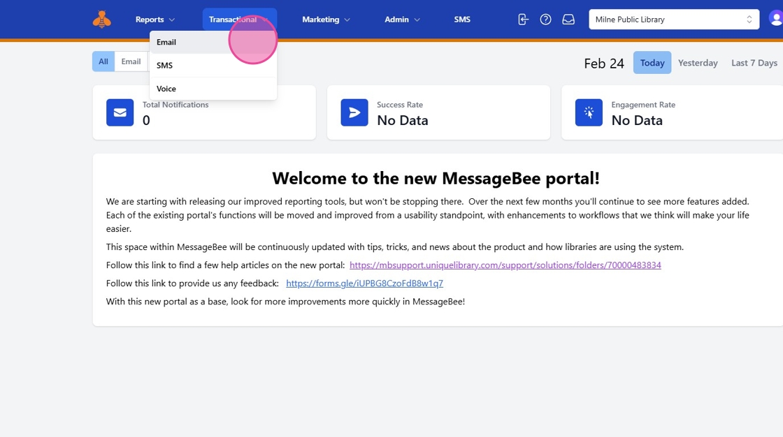 1. In the Transactional tab of MessageBee, select Email.