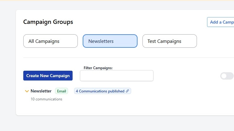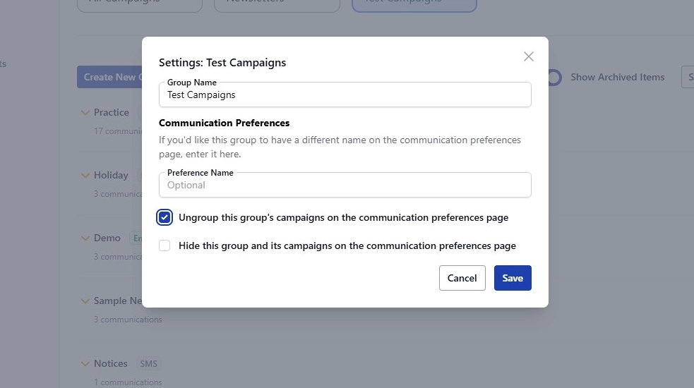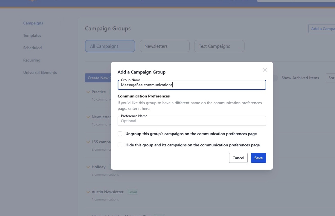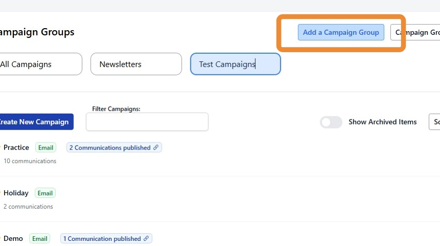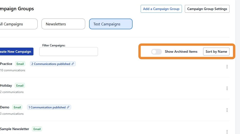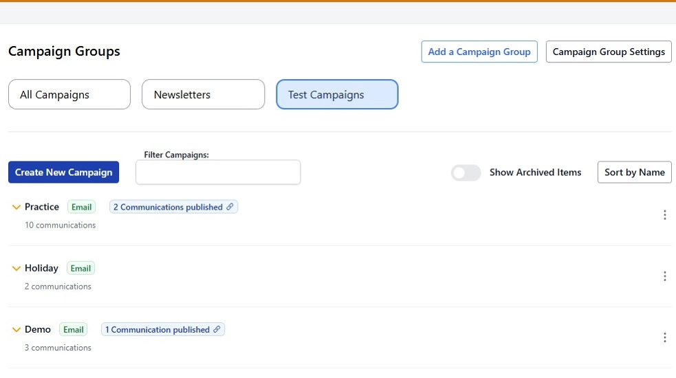 For instance, you can categorize them into Newsletters and Test Campaigns.