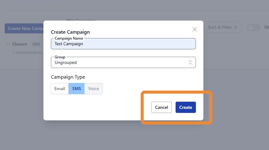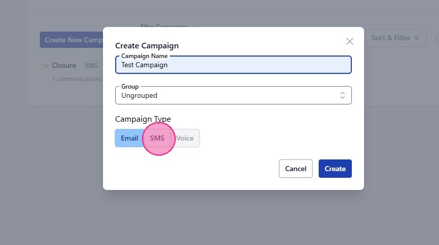 3. Give your campaign a name and make sure to select SMS as the campaign type.