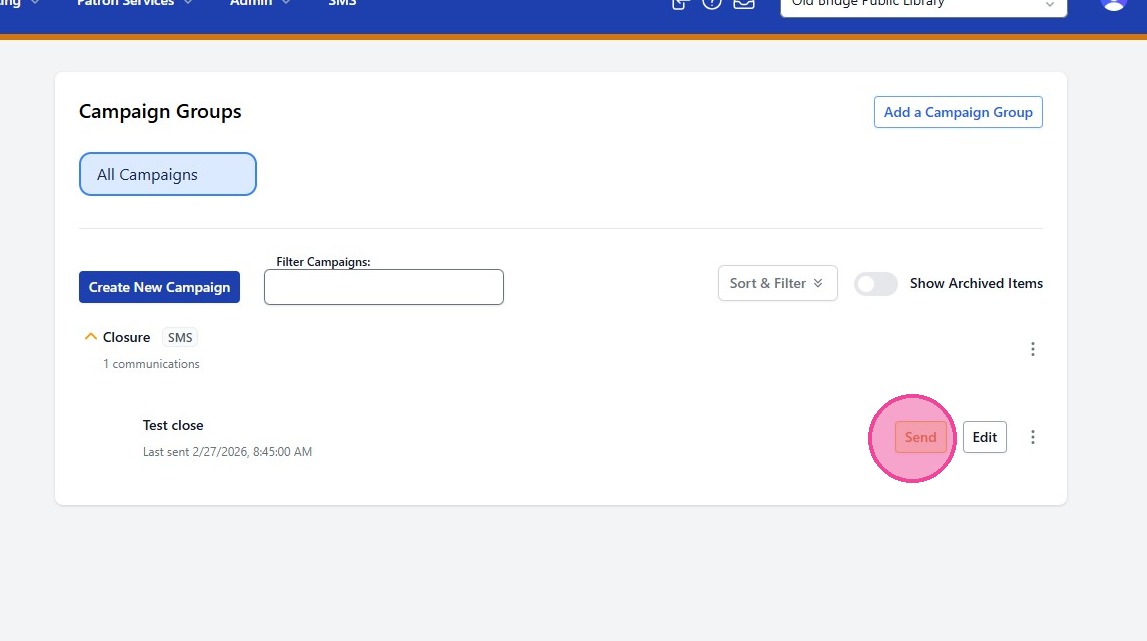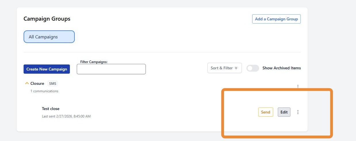 To schedule your message, you will want to select the Send button next to your communication.