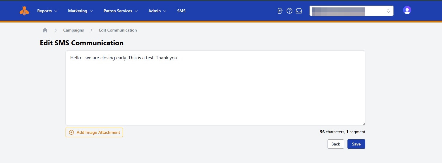 Reminder: SMS messages over 160 characters will count as multiple segments.