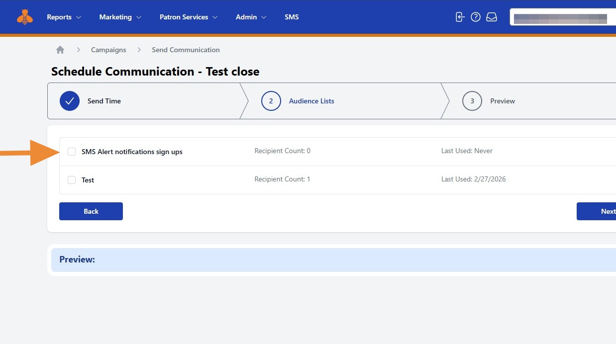 11. Select your desired audience recipient list(s).